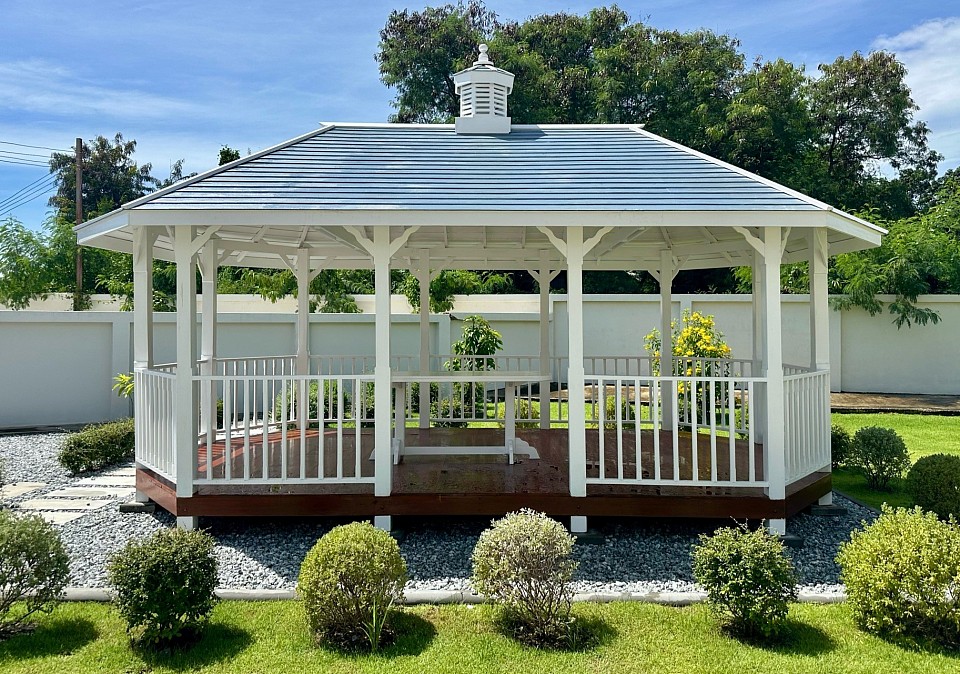 ศาลาไม้ แปดเหลี่ยมทรงยุโรปสีขาว